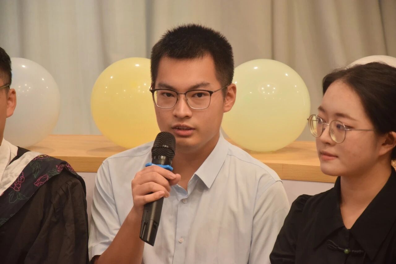 来自卫生管理学院的毕业生代表赖源燊同学回顾了自己担任校学生会主席团成员的经历,表示自己的每一个成长都离不开学校的托举和小伙伴的帮助。他说道,“我也将留在本校读研,会一如既往坚守服务初心,以扎实本领为同学服务、为学校发展贡献青春力量。”