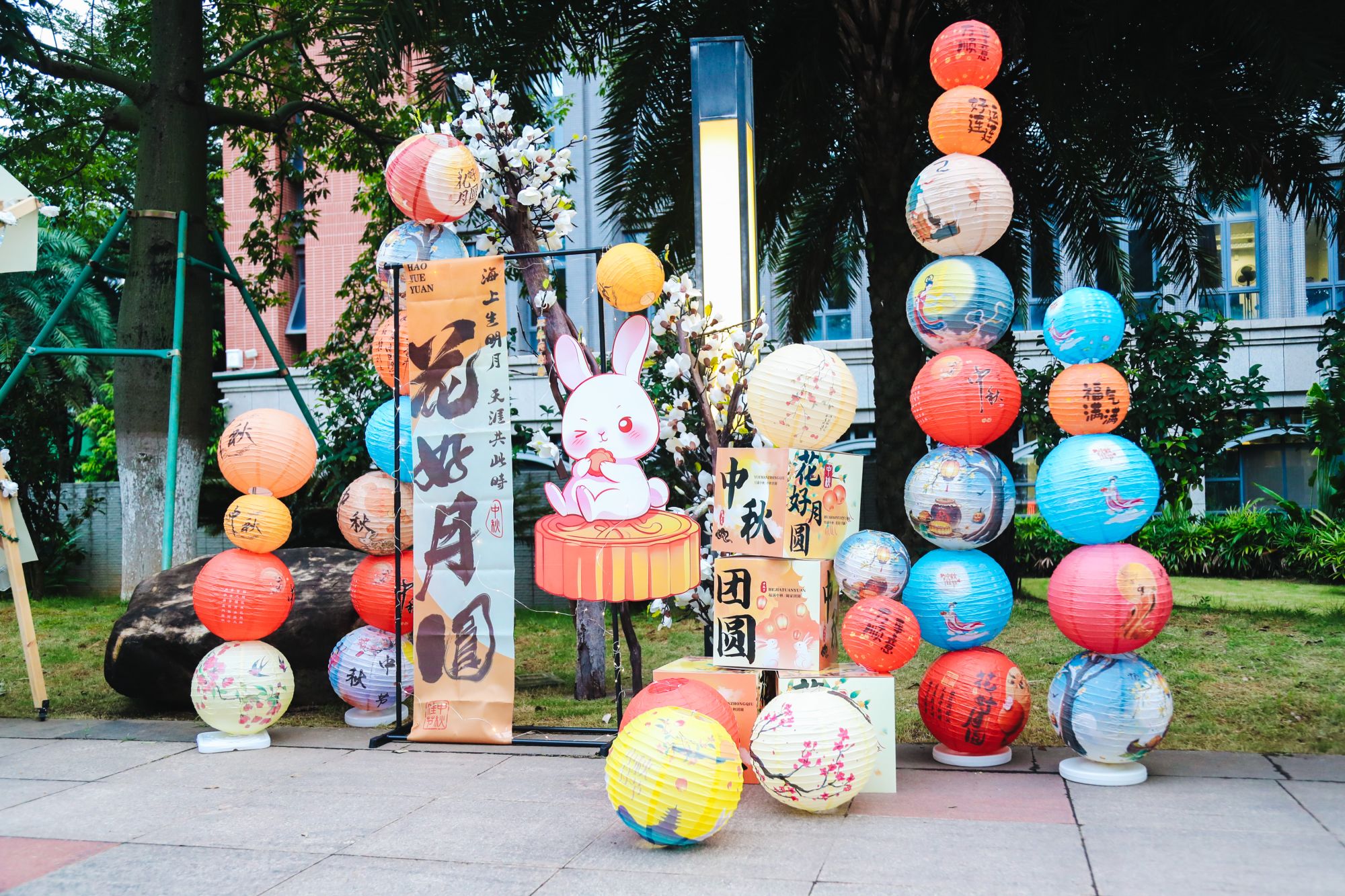 校园各处,诗篇与光影一同摇曳。学生社团联合会举办“明月映雅意,灯彩咏韶年”广州医科大学2025年中秋文化灯笼展。