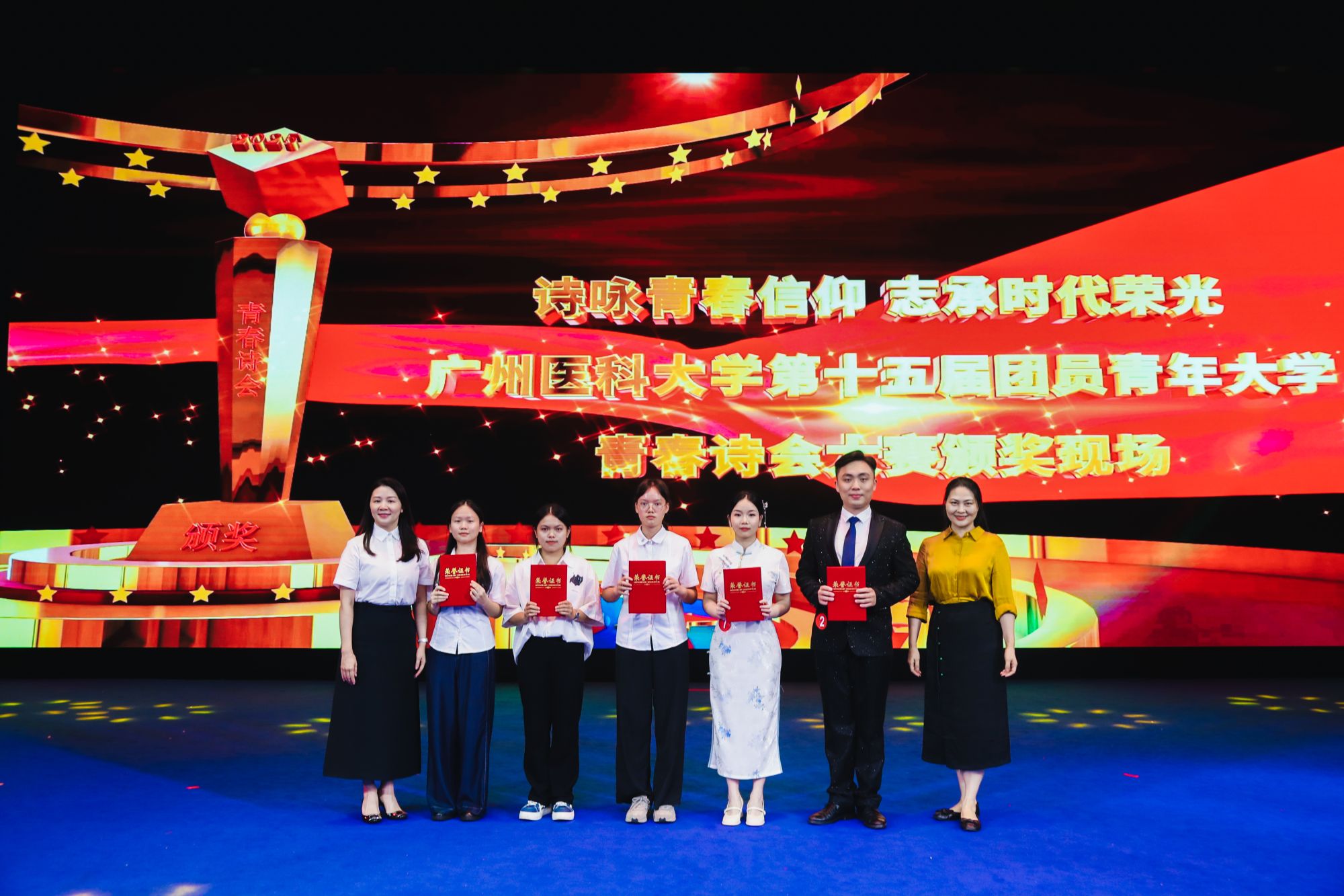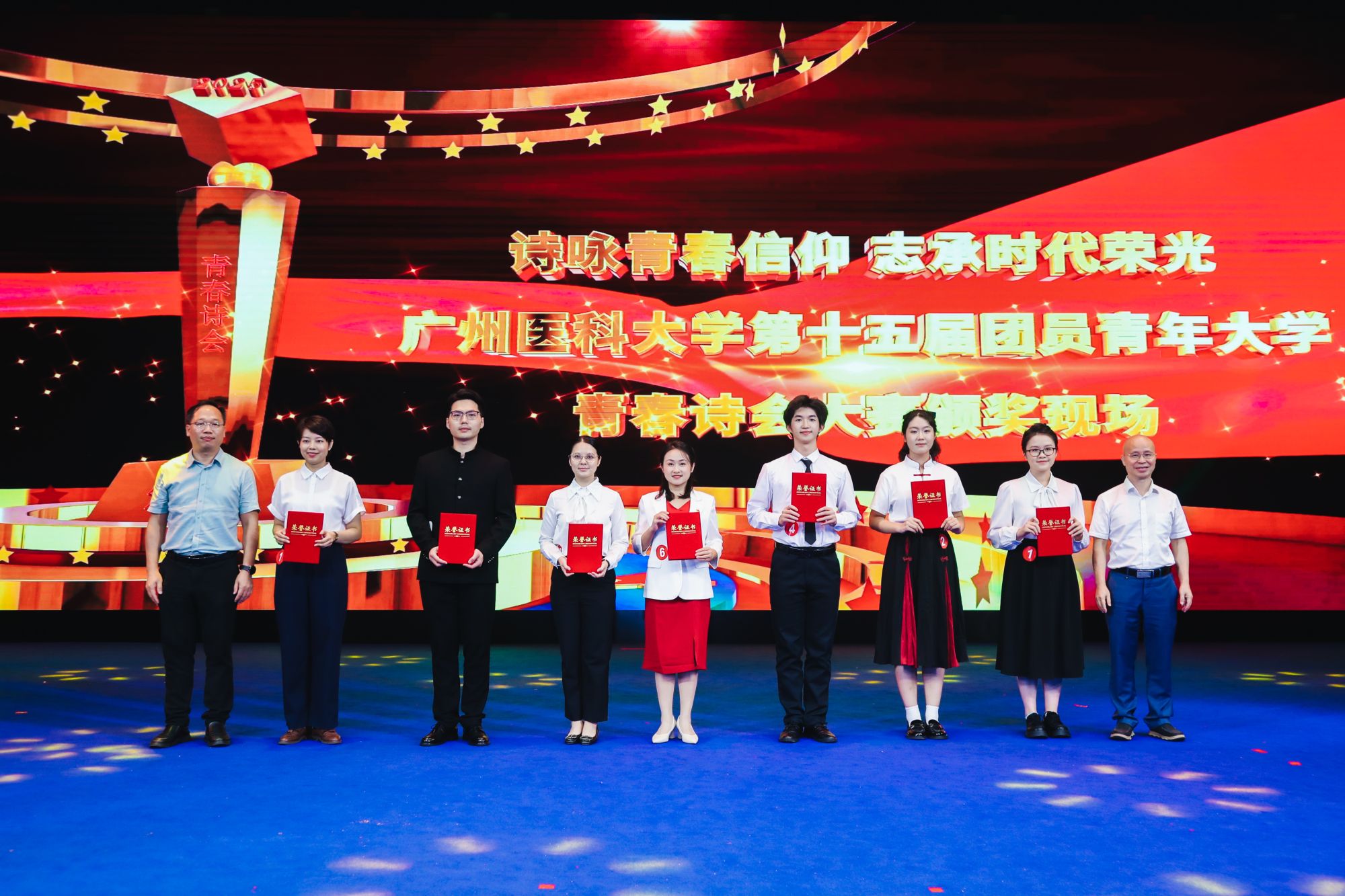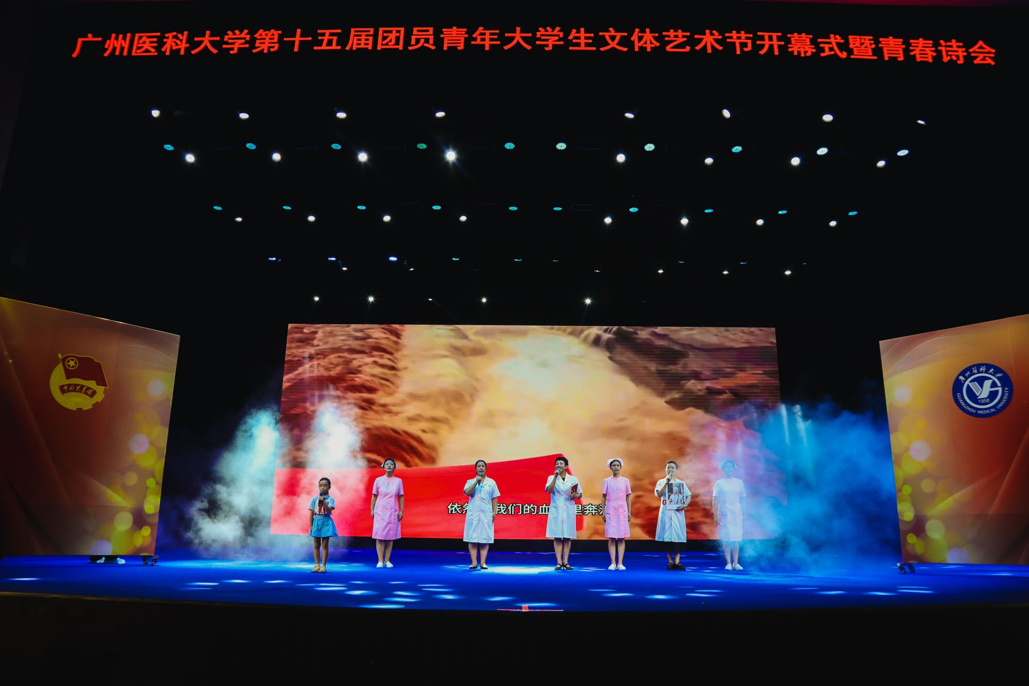 9月28日,由共青团广州医科大学委员会主办,校学生会、学生艺术团承办的第十五届团员青年大学生文体艺术节开幕式暨青春诗会于番禺校区礼堂举行。学校党委书记曾颖如、副校长周麟,关工委陈金城同志、李静娴同志,党委办公室、党委宣传部、党委学生工作部、教务处、离退休人员管理处、学校工会、学校团委负责人,各直属团组织负责人、全体团干参加活动。活动同时吸引了超过1000人次的团员青年现场参与。
