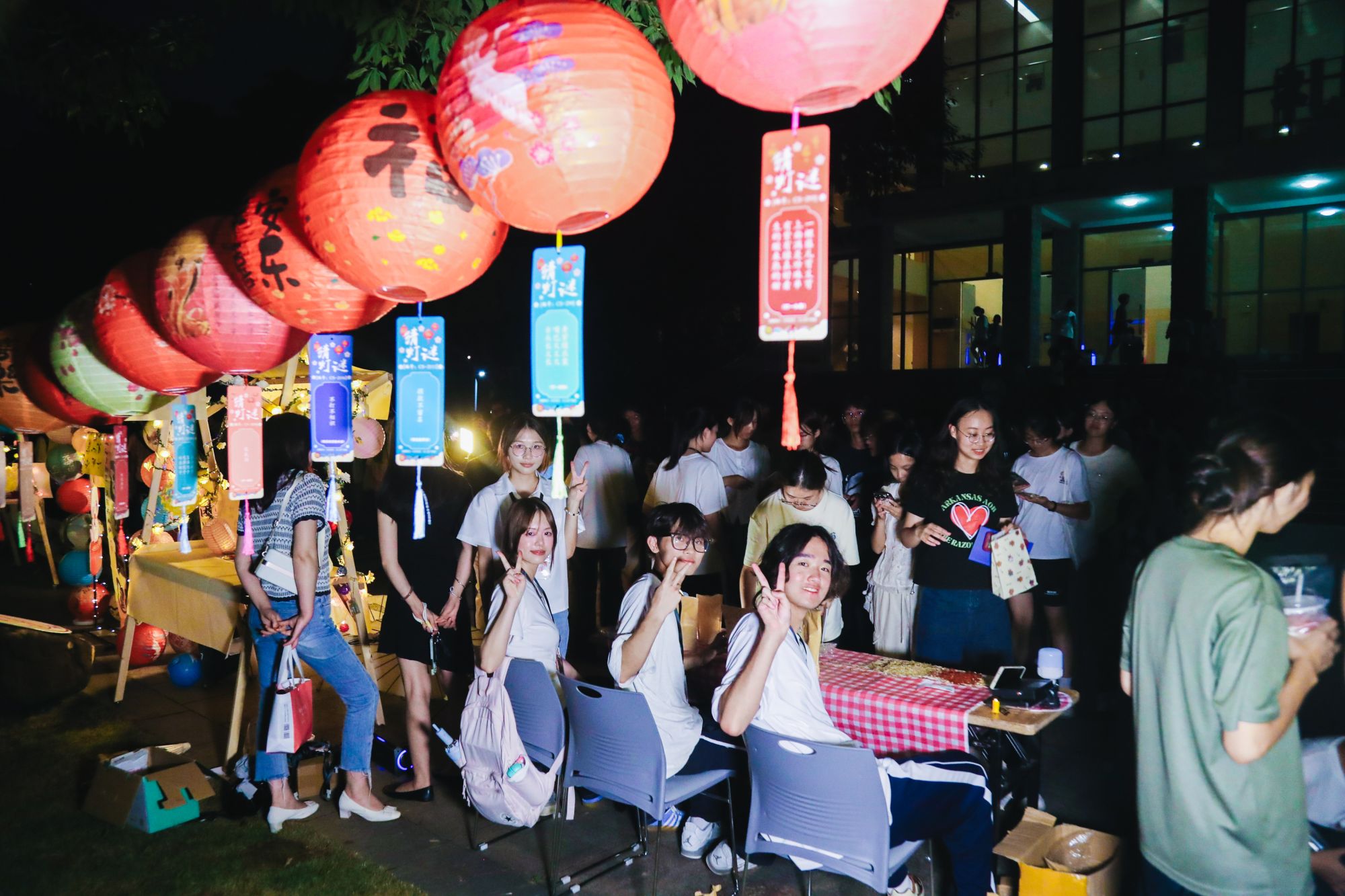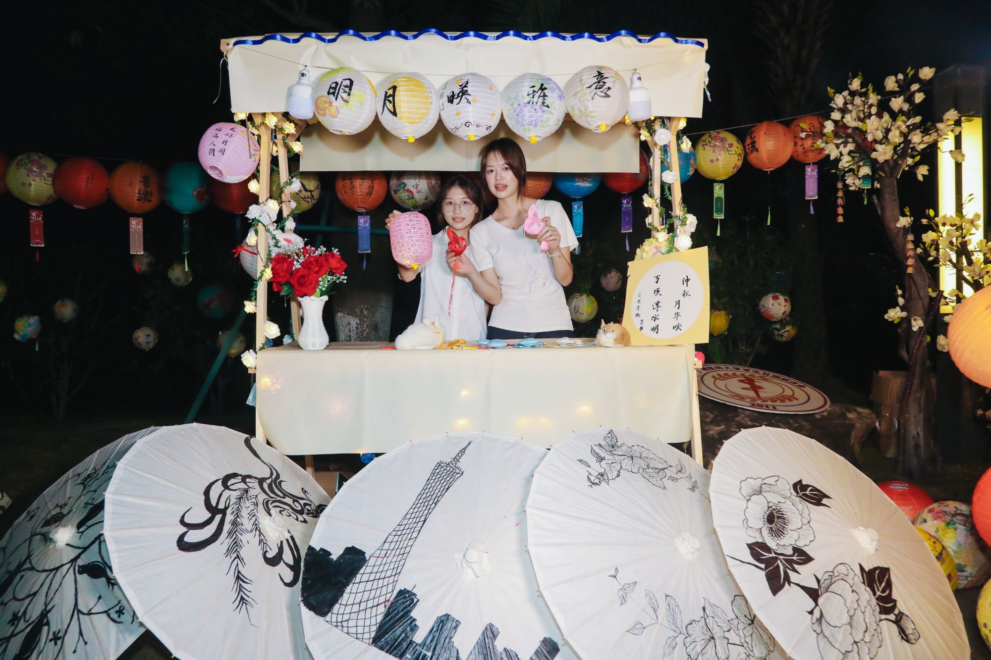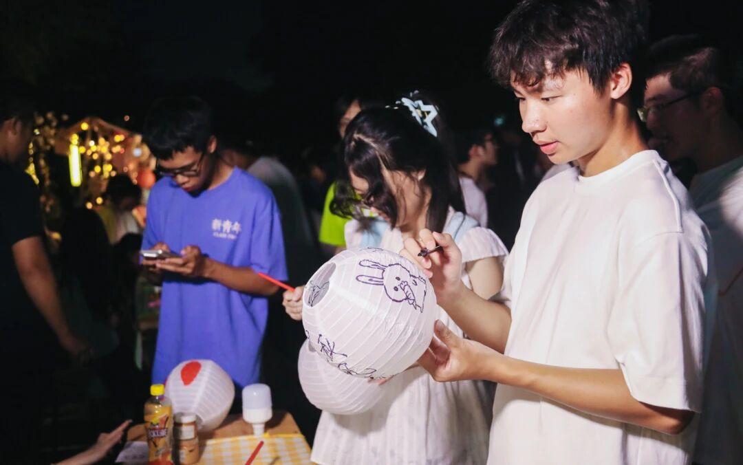 游园会现场,百余盏手工灯笼在南山广场与校道旁连成一片温暖的灯海。在“南山灯韵 月满华诞”盛会中,画团扇、缝香囊、投壶等传统体验区前人头攒动。同学们在动手实践中了解千年文脉,感受文化魅力。