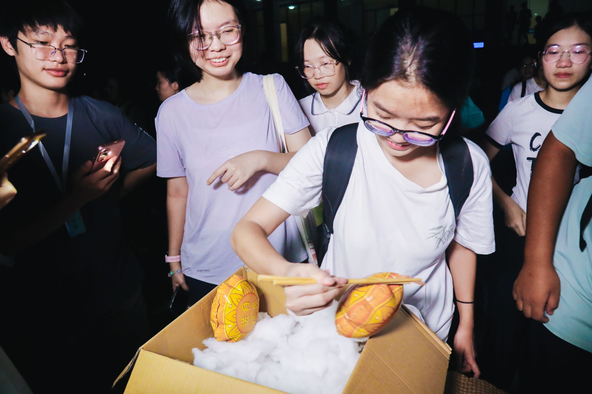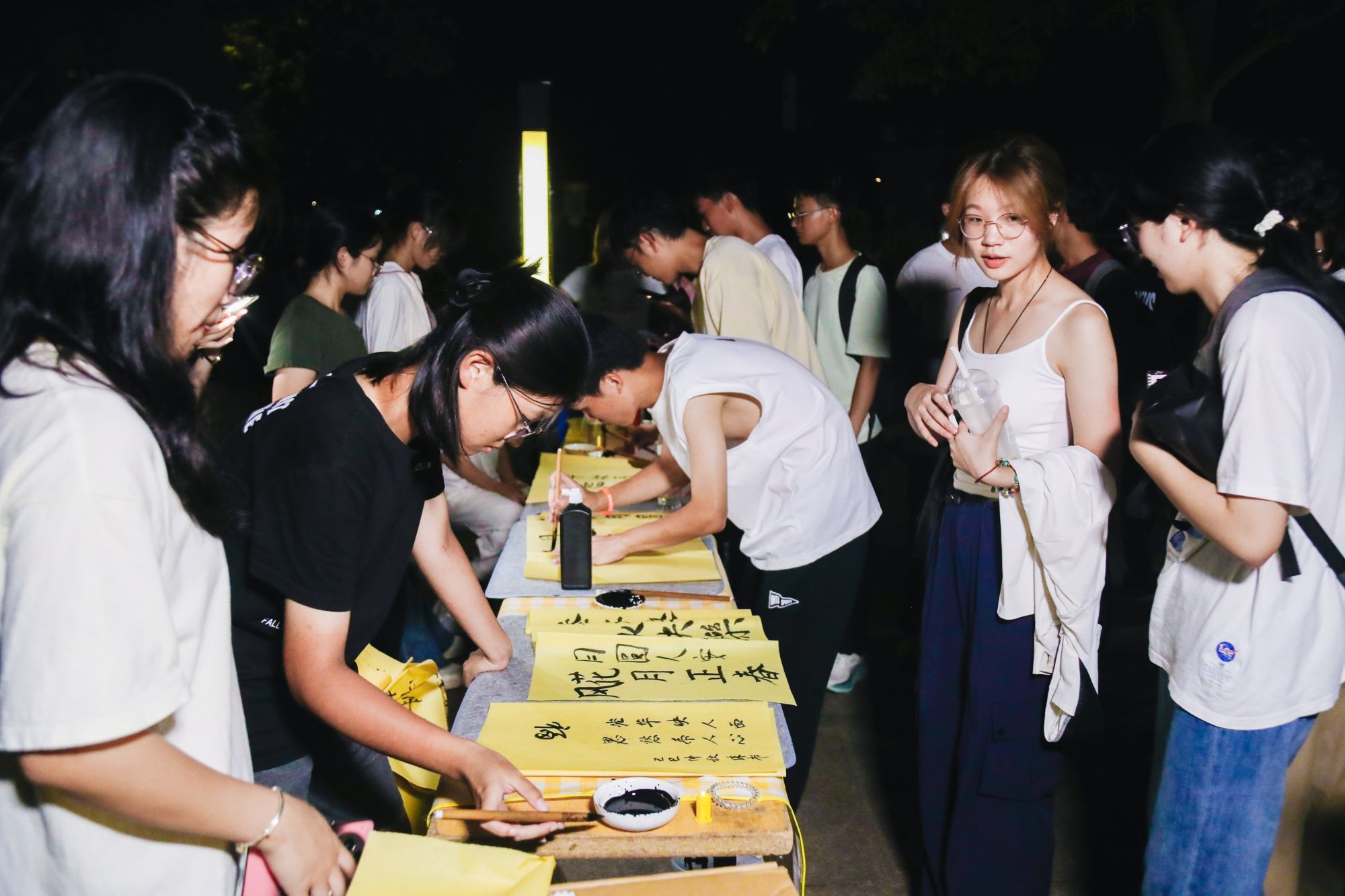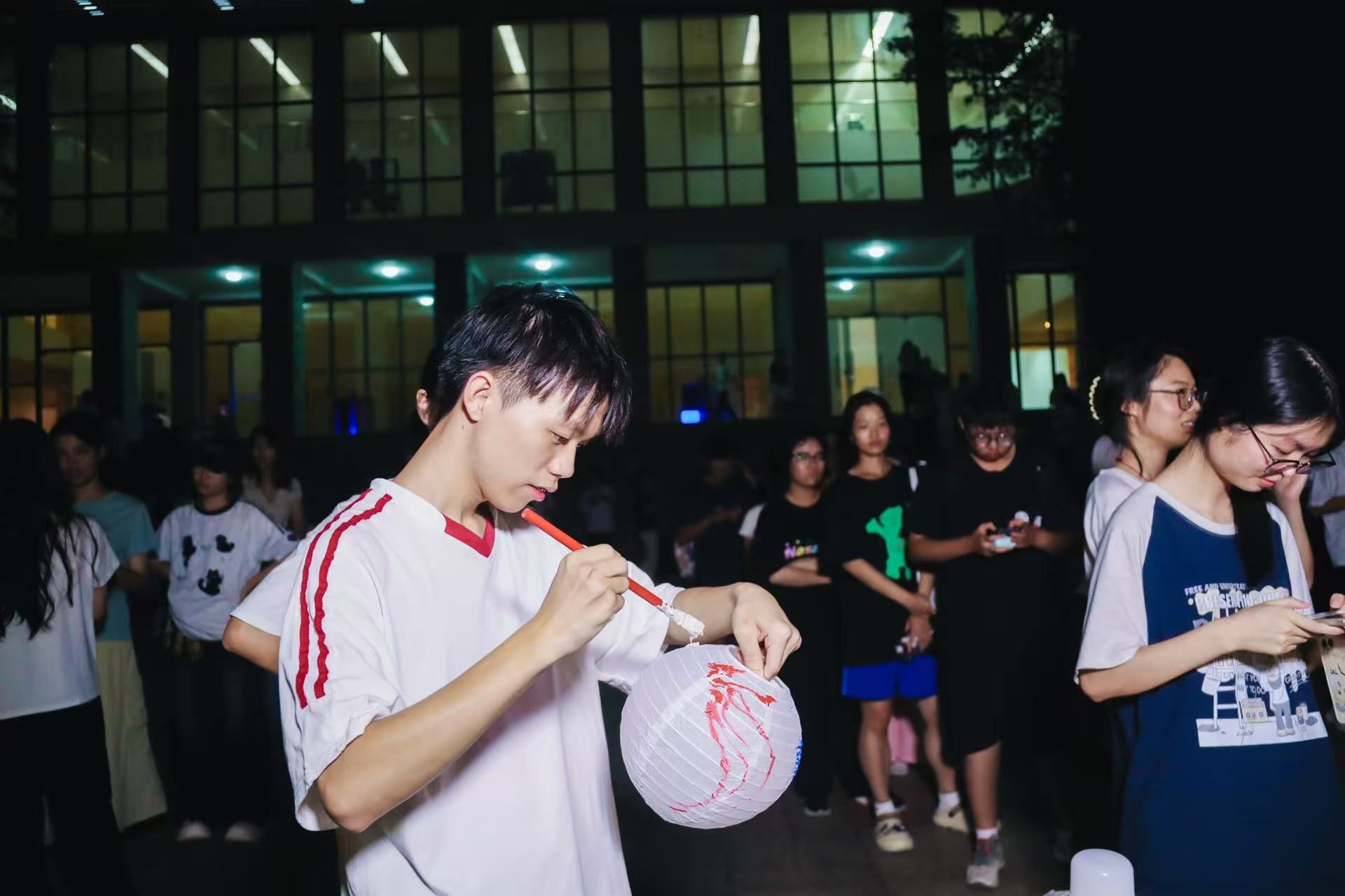 游园会现场,百余盏手工灯笼在南山广场与校道旁连成一片温暖的灯海。在“南山灯韵 月满华诞”盛会中,画团扇、缝香囊、投壶等传统体验区前人头攒动。同学们在动手实践中了解千年文脉,感受文化魅力。