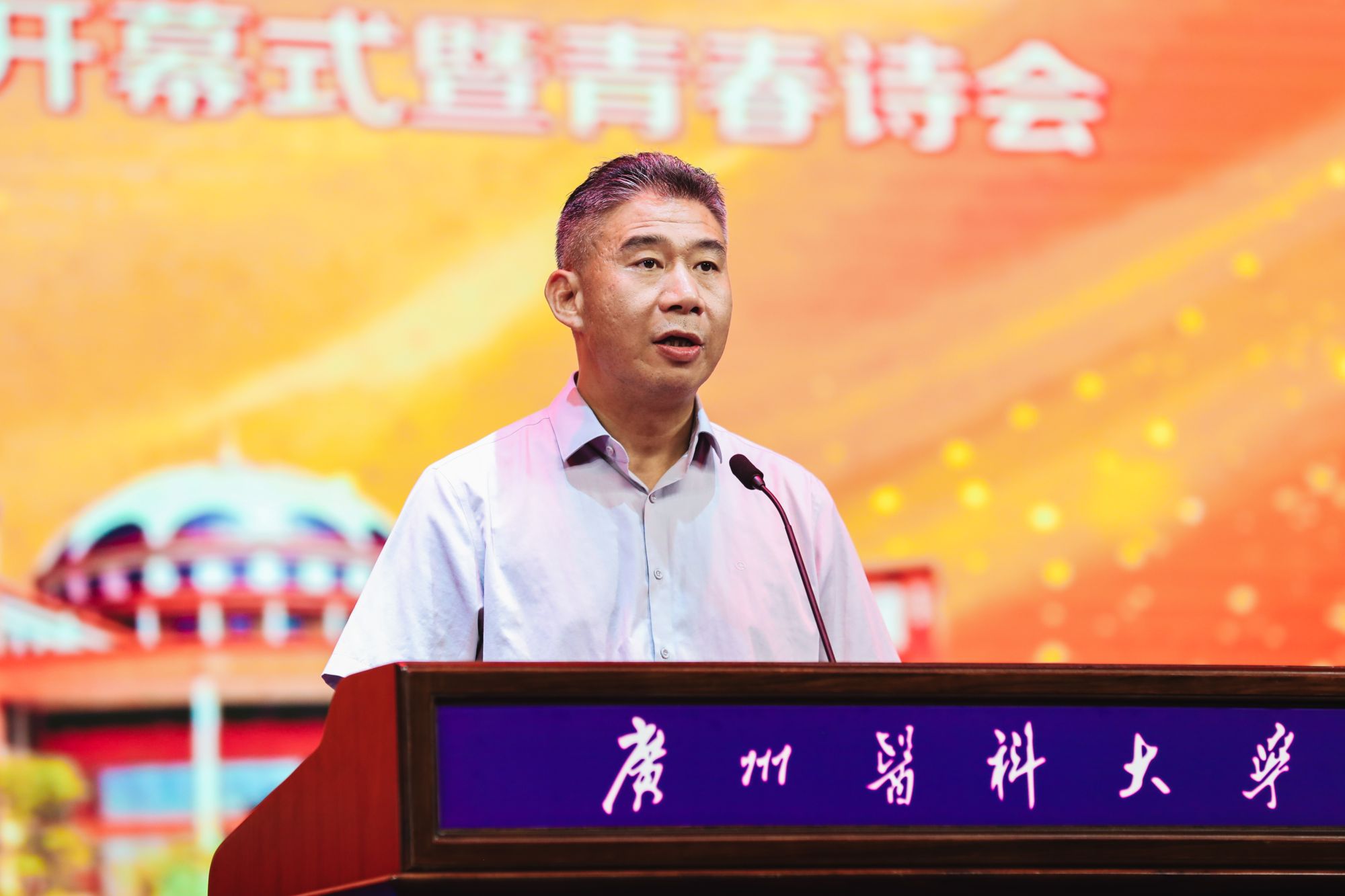 副校长周麟在致辞中表示,青春诗会是我校爱国主义教育与校园文化活动融合的生动实践,始终引领我校青年学子读懂爱国情怀、民族气节,争做有理想、敢担当、能吃苦、肯奋斗的新时代好青年。