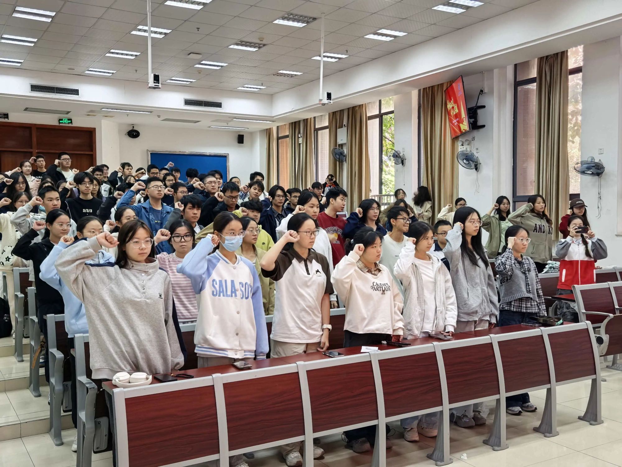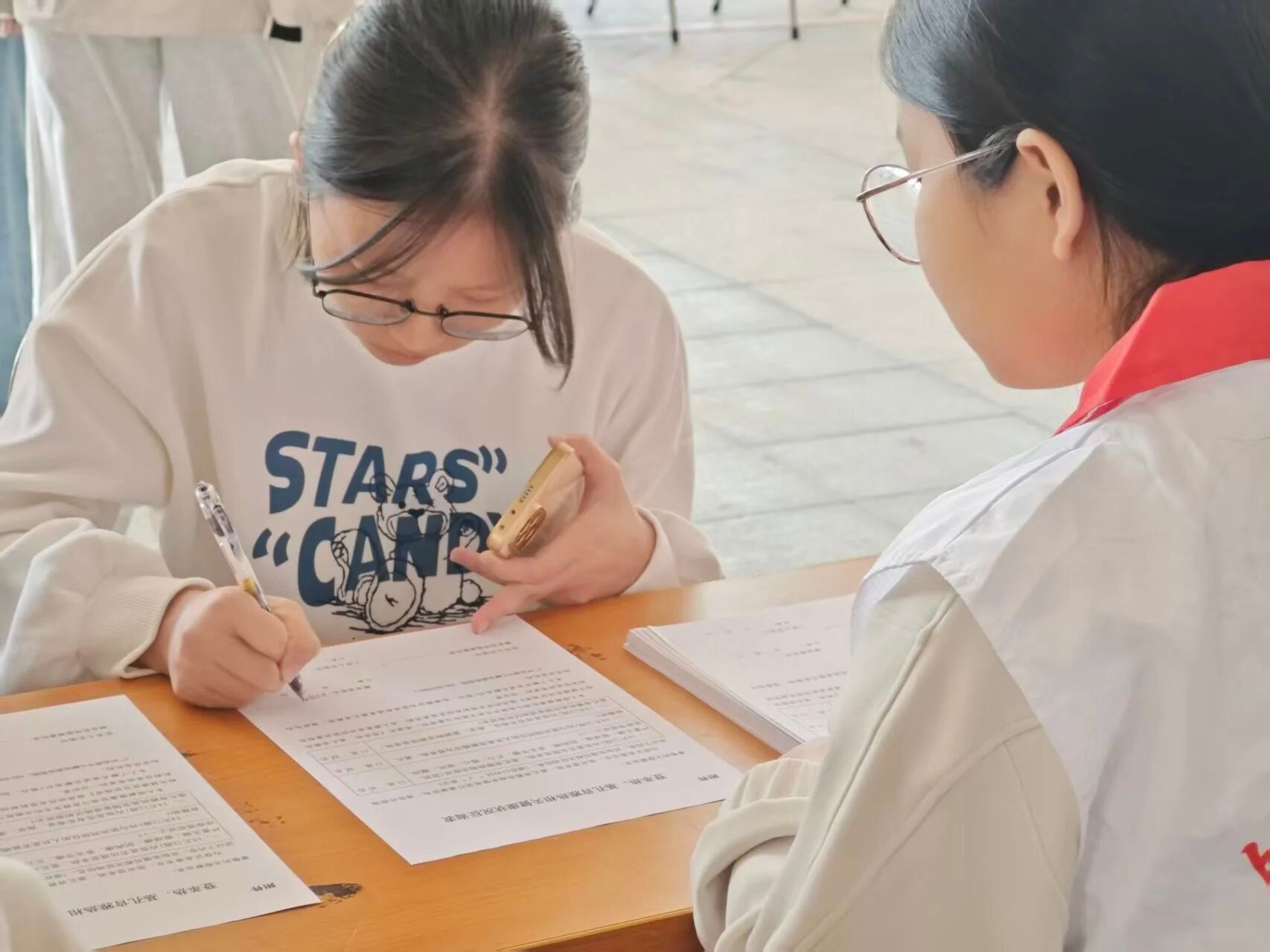活动现场,六位领誓人带领全体参与同学庄严宣誓:“今日我愿伸出臂膀,捐献热血。这一滴赤诚,是生命的礼物,是希望的火种。我承诺:践行公益,传递爱心,让生命因热血而相连!”铿锵的誓言,表达了同学们践行公益、传递温暖的坚定决心。