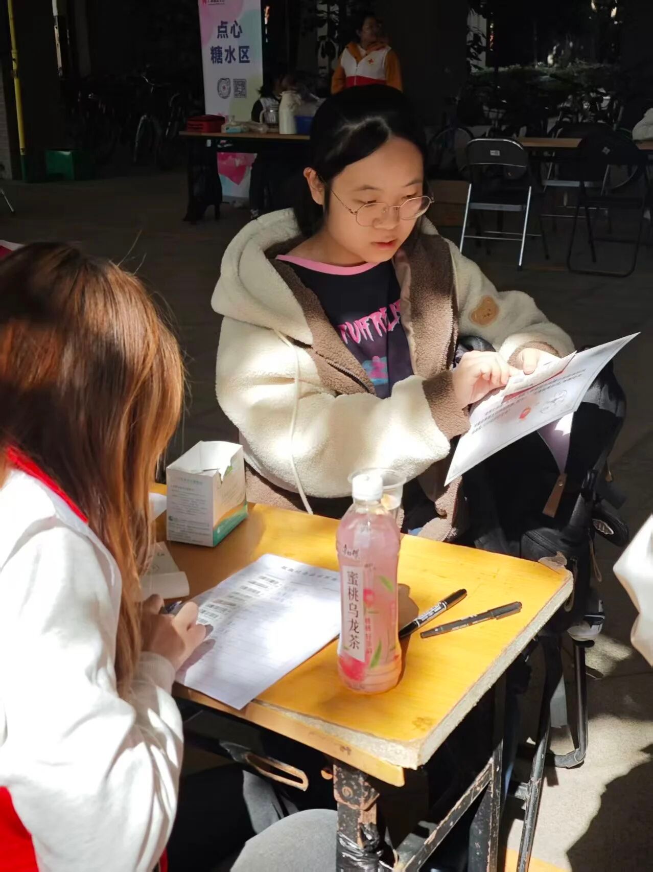 活动期间,许多刚刚迈入成年门槛的同学积极响应,主动加入献血队伍,以“人生第一次献血”的郑重方式,为自己镌刻下无私奉献的成年印记。现场气氛温暖而有序,同学们在工作人员指引下认真填表、接受检查,并从容完成采血。不少同学表示,这次经历让他们对“成年”与“责任”有了更深刻的体悟。有同学坦言:“之前总觉得‘成年’是个模糊的词,直到今天坐在采血椅上,看着血液流进储血袋——原来长大是主动把自己的温热分给需要的人。”也有同学分享道:“18岁生日刚过,就来献了人生第一袋血……看到献血证上的名字,突然觉得‘成年’就是能靠自己给别人撑把伞。”
