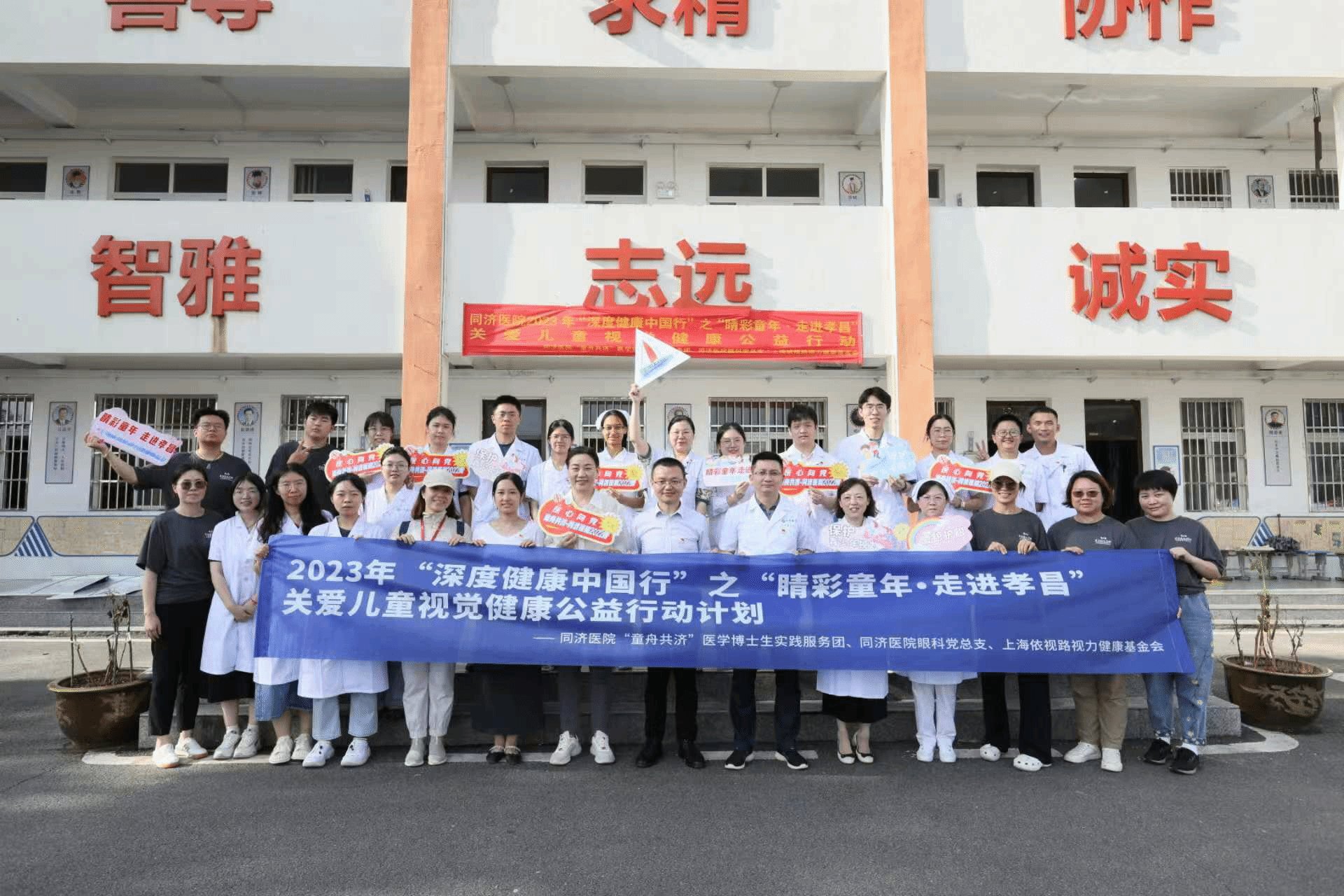 (与慈善基金会合作为儿童免费验光配镜,王军明为下排右七)