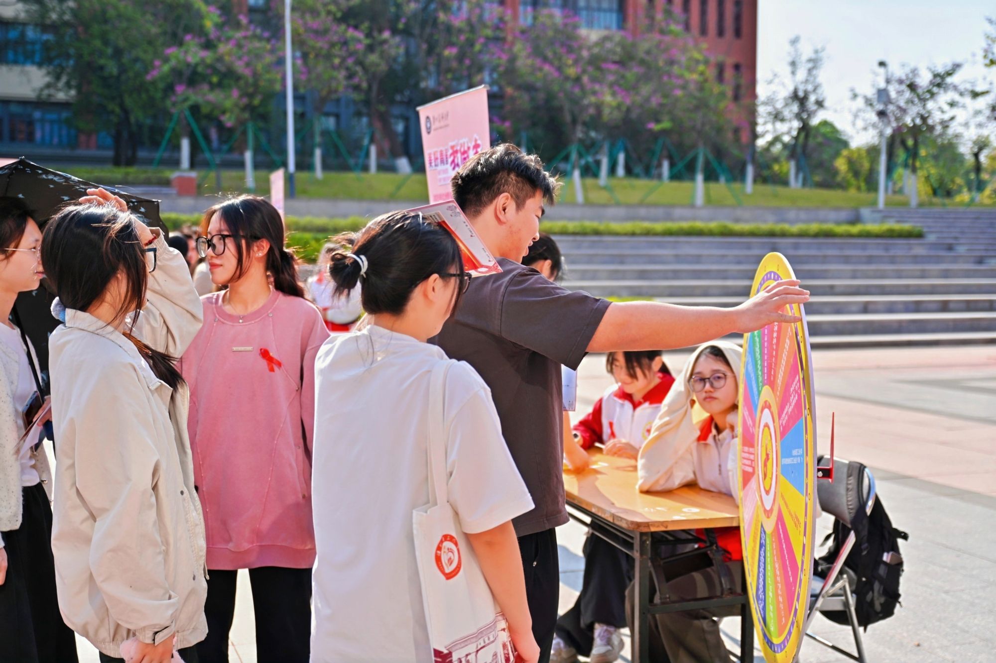 场外还设有内容丰富、形式多样的防艾趣味摊位。此次摊位游戏共设5个关卡,以闯关的趣味形式科普了艾滋病有关问题,将严肃的防艾知识融入现场互动,让同学们在答题闯关、交流探讨中深化认知。