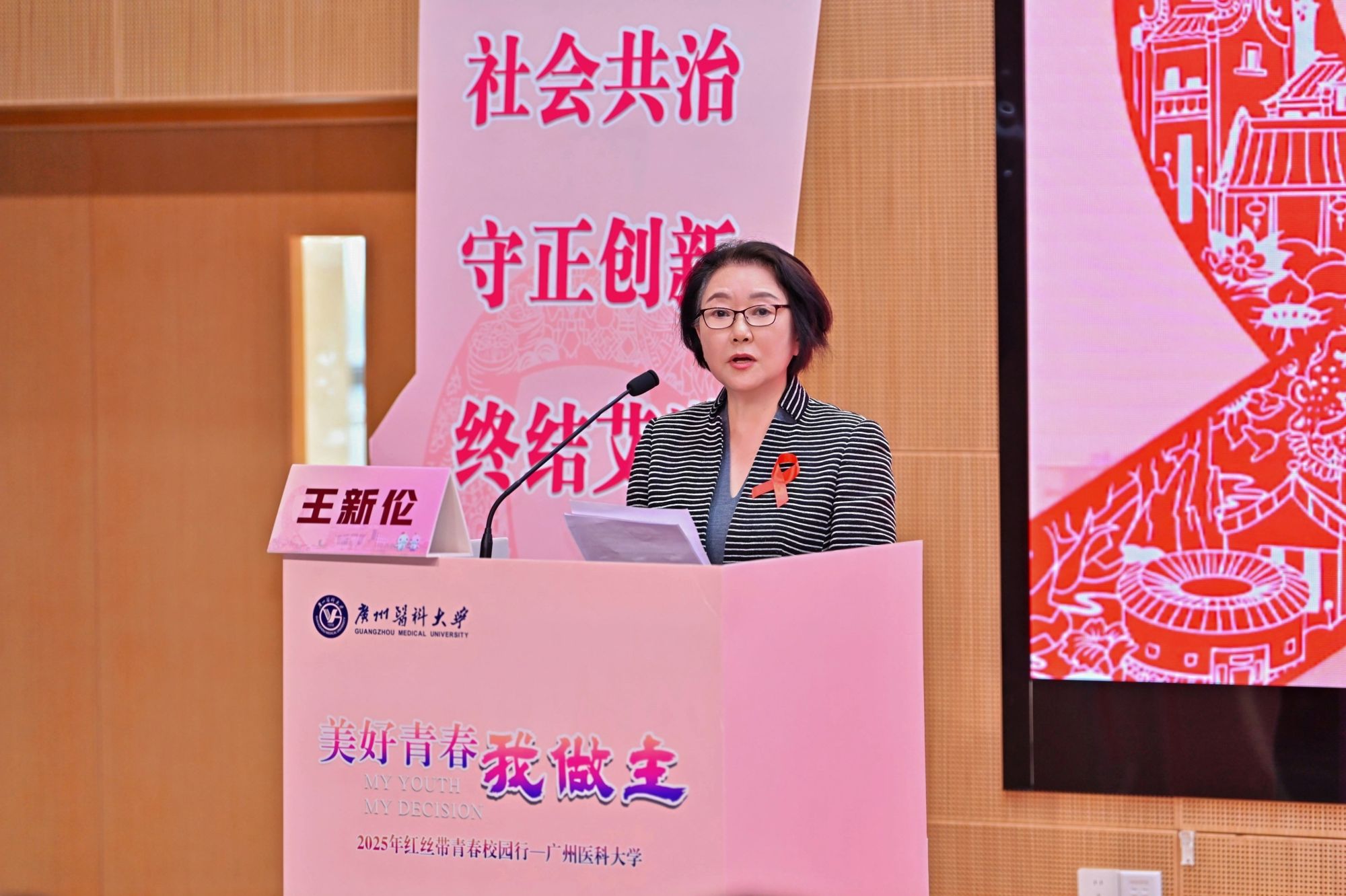 中国性病艾滋病防治协会高级顾问王新伦表示,青年学生处于身心发展关键期,是我国艾滋病防治工作的重点关注人群,高校防艾工作更是守护青年健康、筑牢社会防线、推进健康中国建设的关键一环。广东的高校防艾工作一直成效显著,广州医科大学作为医学类高校的中坚力量,始终高度重视防艾教育工作。她衷心希望每一位同学都能主动投身其中,既做自身健康的守护者,也做防艾知识的传播者、防艾行动的践行者。