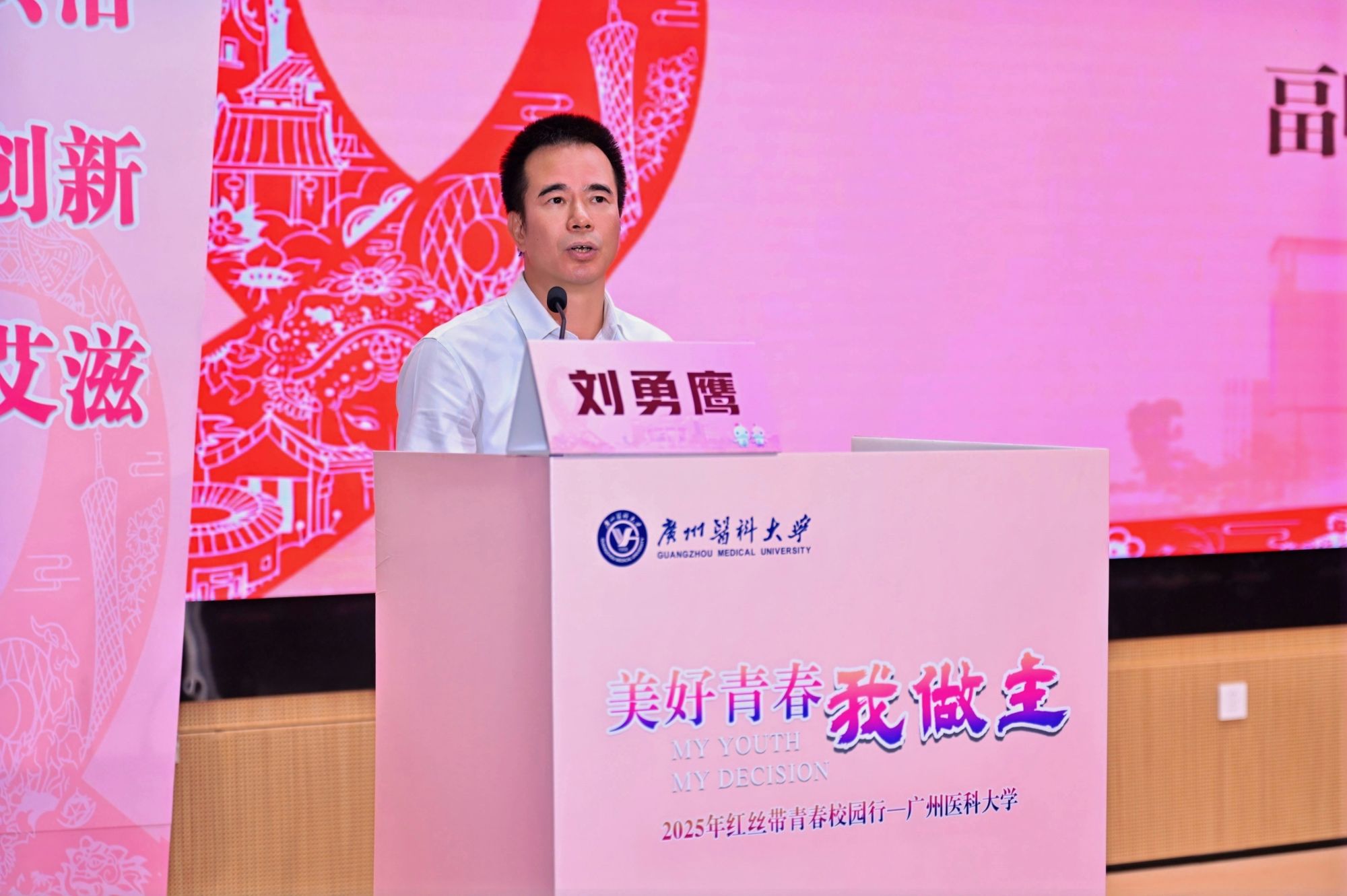 广东省疾病预防控制局副局长刘勇鹰表示,我省高度重视校园传染病防控工作,青年学生艾滋病疫情快速增长的势头得到了有效遏制。这其中,离不开像广州医科大学等项目学校的积极探索,为我省乃至全国贡献了宝贵的“广东经验”。今天的活动是“校园多病共防”项目的生动实践,有助于大家更直观地掌握知识、提升自我保护能力。他呼吁广大青年同学向防艾大使学习,成为健康知识的传播者和红丝带精神的倡导者。